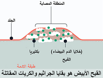 فإذا وجدت على الجلد انتفاخاً أبيض يسمونه قيحاً هذه نتائج المعركة، جرت معركة بين الجرثوم وبين الكريات المقاتلة، فالنتيجة بقايا الجثث في هذا القيح الأبيض الذي يراه الإنسان حينما يلتهب جلده أحياناً.