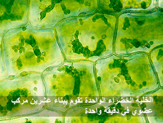 اكتشف العلماء، أن الخلية الخضراء الواحدة، تقوم ببناء عشرين مركب عضوي في دقيقةً واحدة، إذا عُرضت لأشعة الشمس، فالنبات يتغذَّى بالماء، وبعض المواد المعدنية، وبعض المواد العضوية