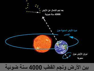 فابنك الصغير مع آلة حاسبة بدقيقتين يحسب لك المسافة بين الأرض وبين أقرب نجم ملتهب، ثلاثمئة ألف كيلو متر ضرب ستين ضرب ستين ضرب أربع وعشرين ضرب ثلاثمئة وخمسة وستين ضرب أربعة، لو كان هناك طريق لهذا النجم، وأردنا أن نصل إليه بمركبة أرضية نحتاج إلى خمسين مليون عام، خمسون مليون عام كي نصل إلى أقرب نجم ملتهب! نجم القطب أربعة آلاف سنة ضوئية،