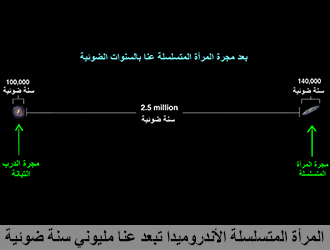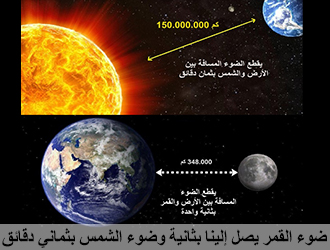 عندما صعدوا إلى القمر هل تظنون أنهم تتبعوا القمر بالضوء؟! ضوءه كاذب، والضوء الذي تراه فالقمر سائر وأنت يجب أن تذهب إلى مكان حينما تصل إليه يجب أن تصل إلى مكان وصوله بعد أربعة أيام، فهناك حسابات دقيقة جداً، فهذا النجم يصل ضوءه إلينا بعد أربع سنوات من انطلاق الضوء منه، وهذه الفترة الزمنية معقولة، أما مجرة المرأة المسلسلة فبُعدها عنا مليوني سنة ضوئية؛