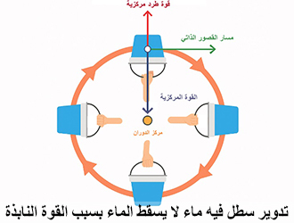أنه في أثناء الدوران نشأت قوة نبذ نحو الطرف الآخر لمركز الدوران.