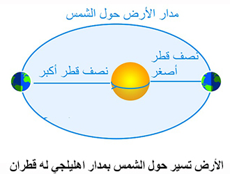لنضرب على هذا مثل الأرض، الأرض تسير في مسار مغلق حول الشمس، هذا المسار ليس دائرياً، بل هو إهليلجيّ أيْ بيضوي، والشكل البيضوي له قطران، قطرٌ أعظمي، وقطر أصغري، فالأرض إذا وصلت إلى القطر الأصغر، هناك خطر أن تنجذب إلى الشمس، لأن المسافة قلَّت بينها وبين الشمس، صغُرت، حينما تقلّ المسافة بين الأرض والشمس تتغلب قوة جذب الأكبر،