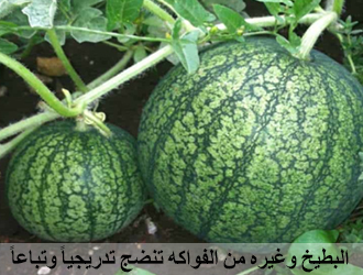 معنى هذا أنه مسوَّى مع الإنسان، البطيخ على الأرض والتفاح في الشجر، لو كانت الآية معكوسة، لو البطيخ على الشجر يصبح قاتلاً، لو بطيخة فلتت تقتل الإنسان، انظر إلى التسوية، كل فاكهة لها وقت، البطيخ ينضج في الصيف، لو كان في الشتاء النفس تنفر منه، أما في الصيف فالبطيخ محبب جداً، بالشتاء البرتقال، أكثره مواد فيها فيتامين "C"، مضادة للرشح، البرتقال والحمضيات تتوافق مع أمراض الشتاء،