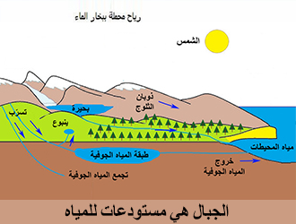 أيضاً مُعَدِّلات للدوران، وجعلها مِصدَّات للرياح، وجعلها مخازن للماء، وجعلها أماكن للاصطياف، وجعل انحناءاتها أماكن تزيد مِن مساحة الأرض، أي مساحة ضلعي المثلث أكبر مِن قاعدته، تزيد المساحات، ويعتدل الجو، ويكون الجبل مِصداً للرياح،