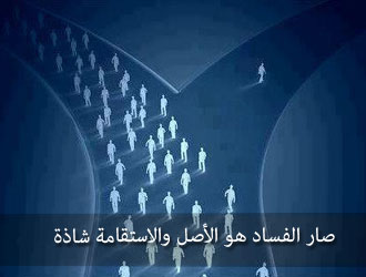 حالة انهيار خلقي، حالة انحلال خلقي، حالة ضبابية في الرؤيا، حالة تفلت من منهج الله، صار الفساد هو الأصل، وأن الاستقامة شاذة، حينما يصبح المعروف منكراً والمنكر معروفاً, فنحن في فساد عريض، أن تشعر بالغربة في هذا المجتمع فهذه علامة طيبة، وأن تستأنس بهؤلاء الناس المنحرفين, الشاردين, الغارقين في الفساد, فهذه حالة تحتاج إلى مراجعة.