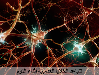 في النهار الخلايا متقاربة، فالسيَّالة العصبيَّة تستمر في سيرها، في الليل تتباعد، فإذا تباعدت انقطعت السيالة العصبية فكان النوم،
