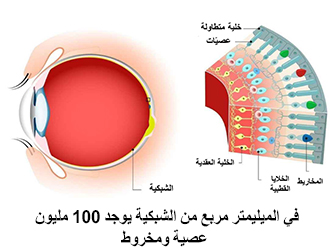 العين جعل فيها مادة مضادة للتجمد، بالميلمتر المربع في شبكية العين يوجد مئة مليون مستقبل ضوئي، عصية ومخروط،