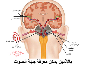 هناك صوت بوق مركبة من اليمين، دخل هذا الصوت إلى هذه الأذن قبل هذه، الفرق الزمني واحد على ألف وستمئة وعشرين جزءاً من الثانية، فأنت أدركت أن المركبة على اليمين، فأعطاك الدماغ أمرًا بالانحراف نحو اليسار، آلية معقدة جداً: