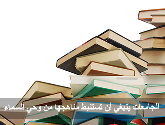 بمعنى أن الجامعات ينبغي أن تَستَنبِطَ مَناهِجها من وحي السماء لا من وحي الأرض ، الجامعات لا تَرقى إلا إذا استَمدَّت مناهِجها وتفاصيل أنظمتها من وحي السماء ، هناك وحيُ السماء ، وهناك وحيُ الأرض .