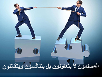 الآن الطًّرَف الآخر ، من دون ذكر اسمه ، يتعاونون تعاوناً مُذهلاً وبينهم خمسة بالمئة قواسِم مُشترَكة ، والمسلمون مع الأسف الشديد الشديد لا يتعاونون ، بل يتنافسون ، بل يتقاتَلون ، وبينهم خمسة وتسعون بالمئة قواسِم مشتركة ، هذه أكبر مشكلة في هذا العَصر.