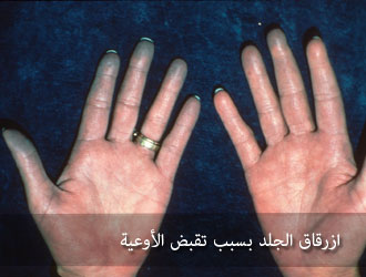 فالذي يصيبه بردٌ شديد يصفرُّ لونه، ومعنى اصفرار اللون أن الشرايين المحيطية التي تمتلئ بالدم تضيق لمعتها، وإذا ضاقت لمعتها قلَّت كمية الدم، وقلَّت بالتالي الحرارة التي يخسرها الجسم من جرَّاء إشعاع ما في الدم من حرارة .