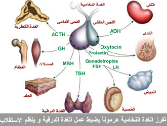 شيءٌ آخر، ترسل الغدة النخامية هرمونا إلى الغدة الدرقية، والغدة الدرقية تقوم بمهمةٍ معقدةٍ صعبة، ألا وهي الاستقلاب، أي تحويل الغذاء إلى طاقة، فالغدة النخامية ترسل أمراً هرمونيا إلى الغدة الدرقية، كي تزيد من الاستقلاب، أي من حرق المواد الغذائية ينتج عنها حرارةٌ تجول في البدن، لو فحصنا الهرمونات في الدم، لوجدنا نسبتها مرتفعة، ولا سيما التي هي صادرةٌ عن الغدة النخامية، والتي تأمر الغدة الدرقية برفع مستوى الاحتراق في الجسم .