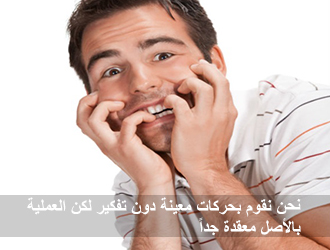 قد تكون جالساً فترى ابنك يقترب من المدفأة، فتقوم إليه، أدركت الخطر، جاء أمرٌ من المخ إلى العضلات، تحرَّكت العضلات، فسرت إليه، ثم حملته بيدك، وأبعدته عن المدفأة، هذا الشيء الذي نفعله ولا نفكر فيه، عمليةٌ معقدةٌ جداً .