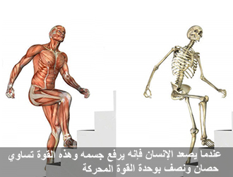 الإنسان يمشي إذا صعد الإنسان من طابقٍ إلى طابق، أي رفع جسمه البالغ سبعين كيلو غرام إلى ثلاث أمتار،