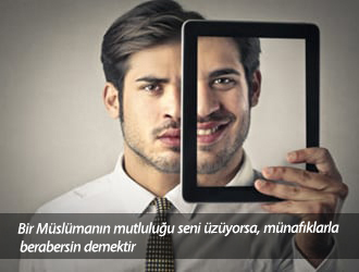 Bu arada çok utanç verici bir ölçüt ile karşılaştık. Doktora unvanını almış bir kardeşiniz varken onun bu başarısına kendinizin başarısı gibi sevinmiyorsanız gerçek mümin olamazsınız. Evlendiyse, mutlu bir evliliği varsa buna sevinmelisiniz. Yeni bir ev aldıysa mutlu olmalısınız. Bir şirket kurup başarılı olduysa buna sevinmelisiniz. Onun zaferi, evliliği, diploması, ticareti sizi üzüyorsa bilin ki siz münafıklar kategorisine girmişsiniz demektir.