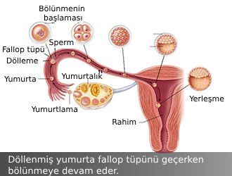 Şu anda bölünen ve fallop tüpü içinde sürekli çoğalan hücrelerin yolculuğunu izliyoruz.