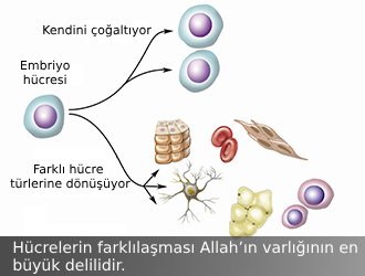 Döllenmiş yumurta, işte bundan sonra bu hücre kitlesine artık döllenmiş yumurta adı verilmektedir. Hücre bölünmesi ve çoğalması sırasında başka bir hayret verici olay daha gerçekleşir. Bazı hücreler ayrılmaya ve farklılaşmaya başlar. Bu farklılaşma Allah’ın varlığın en büyük delilidir. Bu farklılaşma olmasaydı cenin bir kemik ya da et parçası olarak kalırdı.